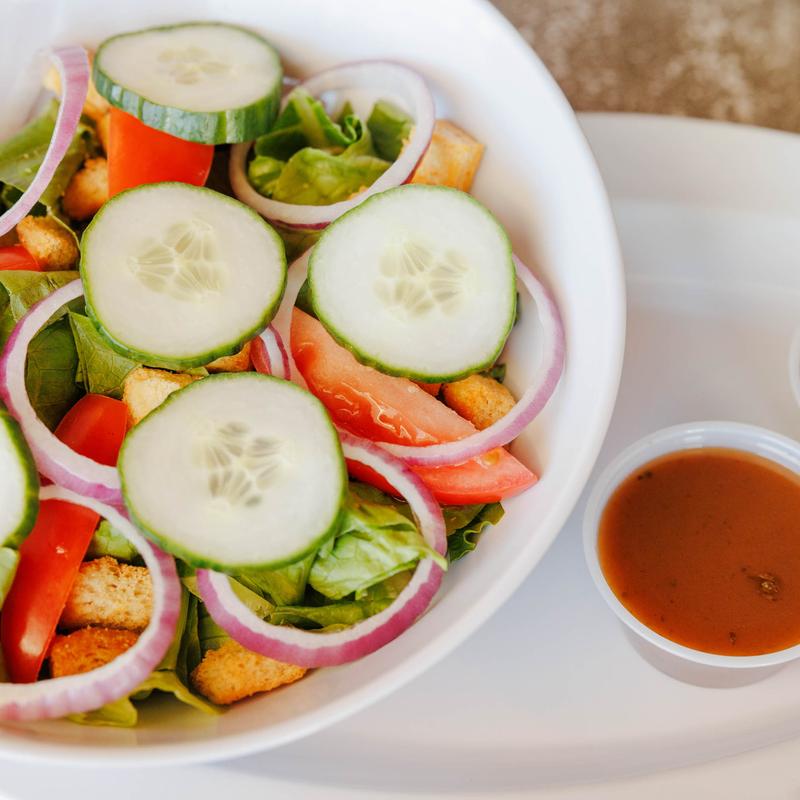 Romaine lettuce, croutons, tomato, cucumber, onion & balsamic vinaigrette dressing.