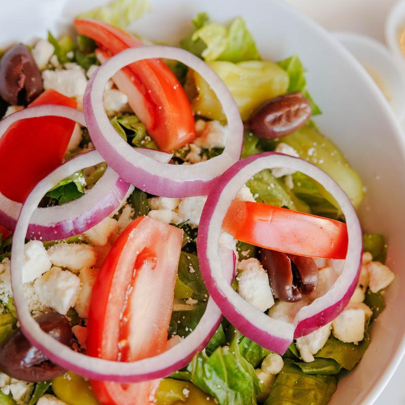 Romaine, feta, pepperoncini, kalamata olives, tomatoes, red onion & Greek dressing.