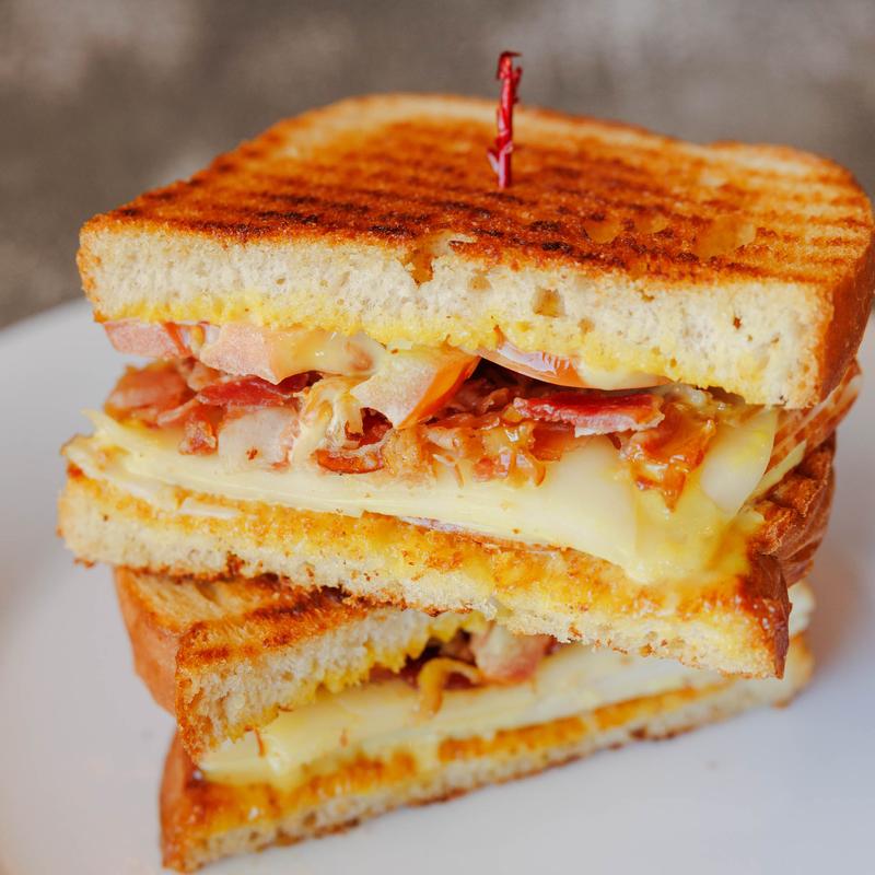Grilled chicken with bacon, Swiss cheese & chipotle sauce, lettuce & tomato, served on sourdough.